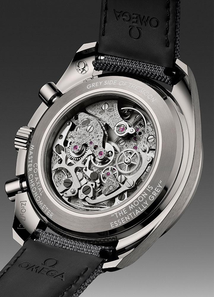 Las nuevas correas de tejido de nailon vienen ahora forradas con caucho para un ajuste más flexible, mientras que las nuevas correas de caucho presentan texturas lunares grabadas en relieve en su reverso, un sutil vínculo táctil con la Luna misma.