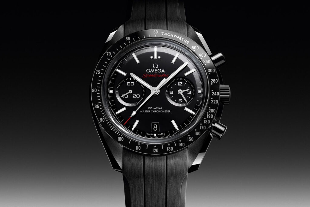 La cerámica siempre ha sido fundamental para la identidad del Dark Side. Omega debutó con su uso en el primer Speedmaster Dark Side of the Moon en 2013, que fue tallado a partir de un solo bloque de cerámica de óxido de circonio. Hoy, esta generación de Speedmaster cuenta con una nueva construcción de caja de cerámica —perfeccionada tras cuatro años de investigación— y que ahora exhibe un pulido más profundo y biseles más afilados, manteniendo la presencia de 44.25 mm.