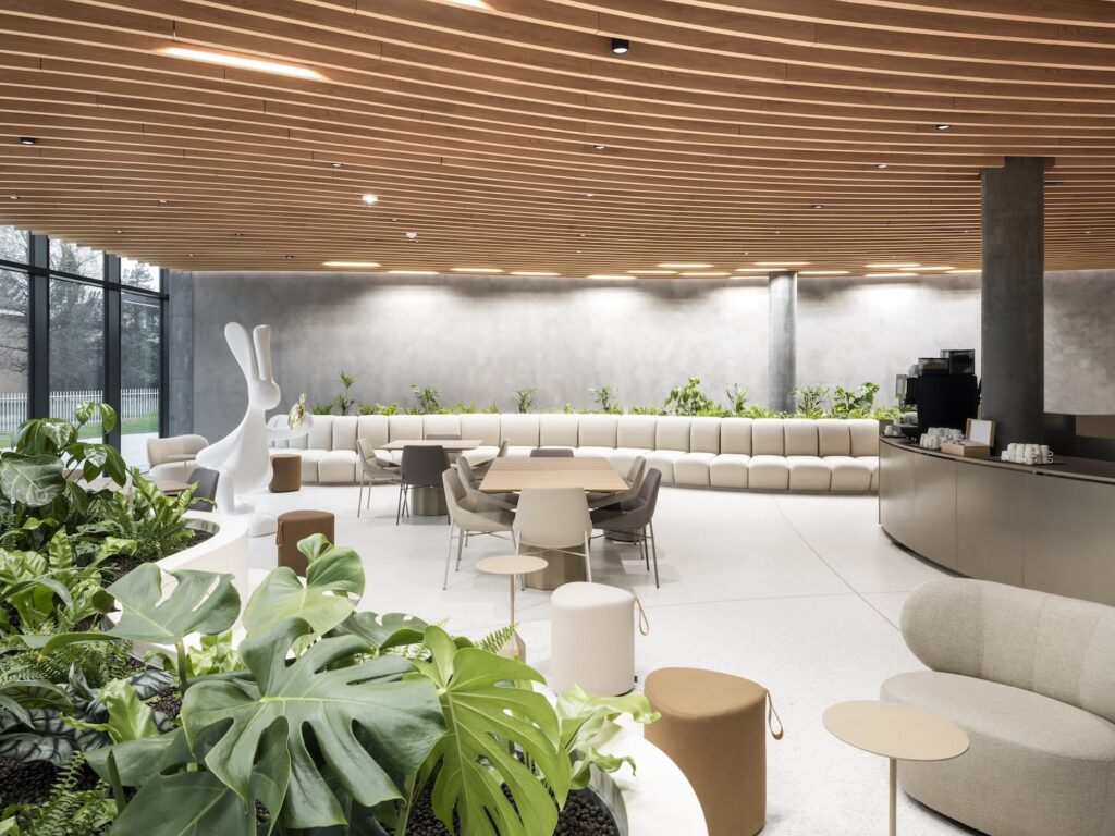 La distribución interior sigue la lógica del proceso productivo. En la planta baja se sitúan los talleres de mecanizado, acabado y montaje. La primera planta alberga el restaurante de empresa con terraza, la oficina técnica y de métodos, y las áreas administrativas. El centro de nuevas tecnologías ocupa la tercera planta. Este orden no es casual: refleja la progresión natural en la fabricación de cajas y brazaletes, y permite que los flujos de producción avancen sin interrupciones entre departamentos.