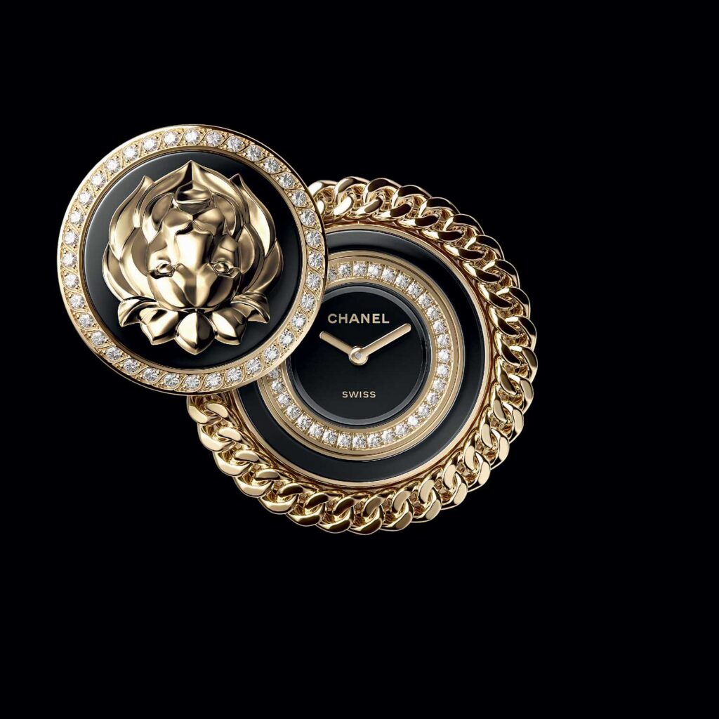 Estas joyas no puede pasarse por alto. La línea Mademoiselle Privé Bouton Lion explora una dimensión íntima y lúdica del tiempo, donde la relojería se disuelve en joya y el gesto de consultar la hora se convierte en un acto casi secreto. Tanto el anillo como el collar largo reinterpretan el motivo del «botón» —cargado de referencias al universo de Gabrielle Chanel— para ocultar una carátula lacada en negro bajo una tapa ricamente trabajada.