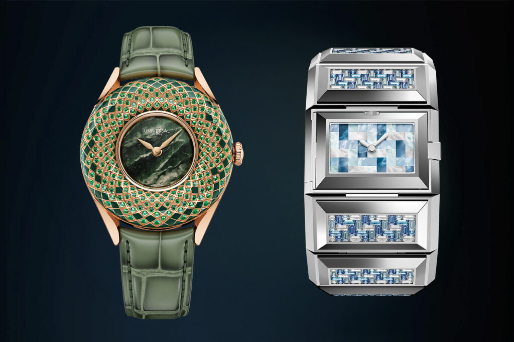 Estas piezas forman parte de una colección de firma de tiempo limitado, junto a lo que Universal Genève denomina la colección couture, compuesta esencialmente por piezas de alta joyería con esmeraldas, zafiros, rubíes y, por supuesto, diamantes.