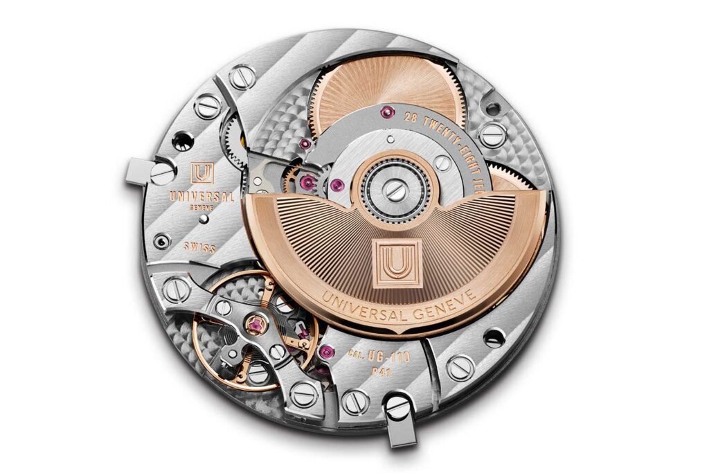 Para el relanzamiento de 2026, la marca quiere poner en valor la amplitud y la profundidad tanto de sus colecciones como de sus capacidades técnicas. Al fin y al cabo, Universal Genève fue también pionera en los movimientos automáticos de micro-rotor, con la introducción del Calibre Microtor 215 en 1958, uno de los más finos de su época. En la década de 1960 lo superó con el aún más delgado Calibre 1-66. En consecuencia, casi todas las nuevas referencias —a excepción de los modelos de cuarzo y las piezas de alta joyería couture— lucen fondillo abierto que muestra los nuevos movimientos de manufactura con su micro-rotor de tres cuartos en oro rosa.