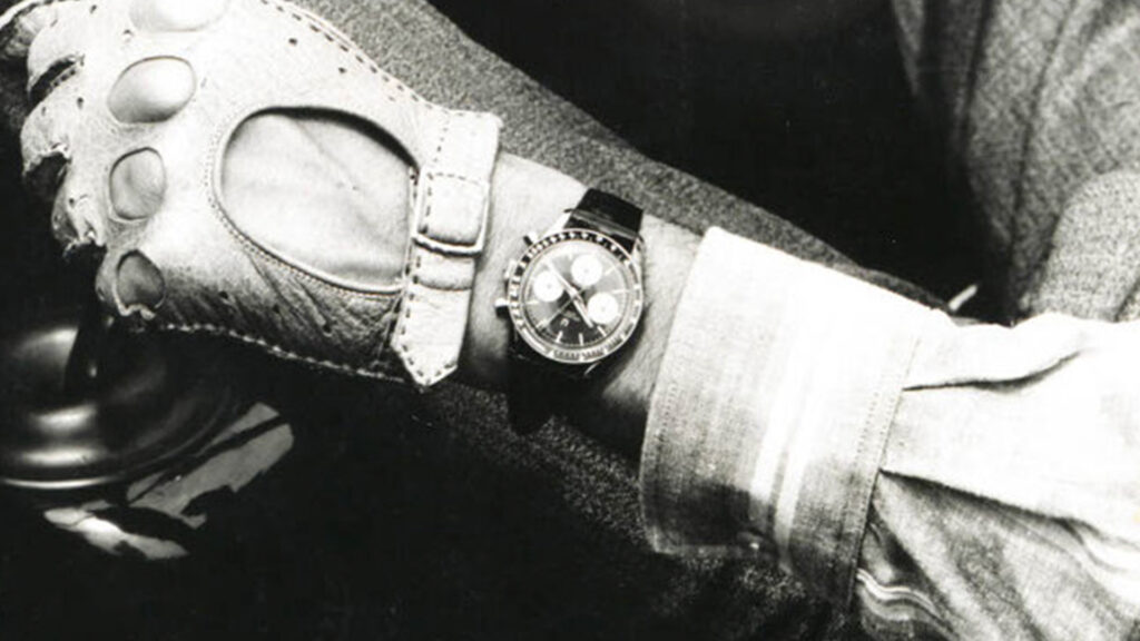 Luego, a mediados de los años sesenta, Nina Rindt, icono de la moda y esposa del piloto de Fórmula 1 Jochen Rindt, lució su Universal Genève Compax junto a la pista, con una amplia correa bund de piel, y el resto es historia a partes iguales de la relojería y la moda.