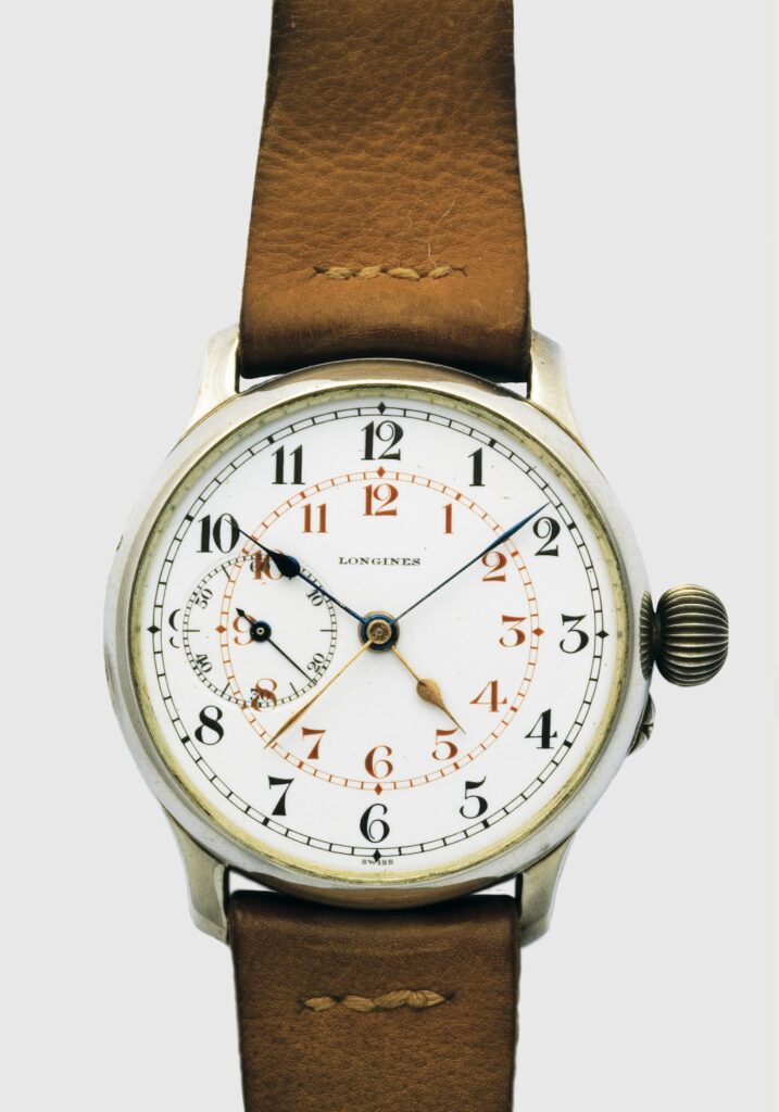 Presentado en 1908, este reloj de bolsillo fue el primero en incluir dos husos horarios, utilizando manecillas separadas para convertir la hora turca en hora de Europa Occidental. Patentado en 1911, este reloj de 49 mm, equipado con el calibre Longines 18.69N, incorpora cinco manecillas para facilitar su innovadora funcionalidad horaria.
