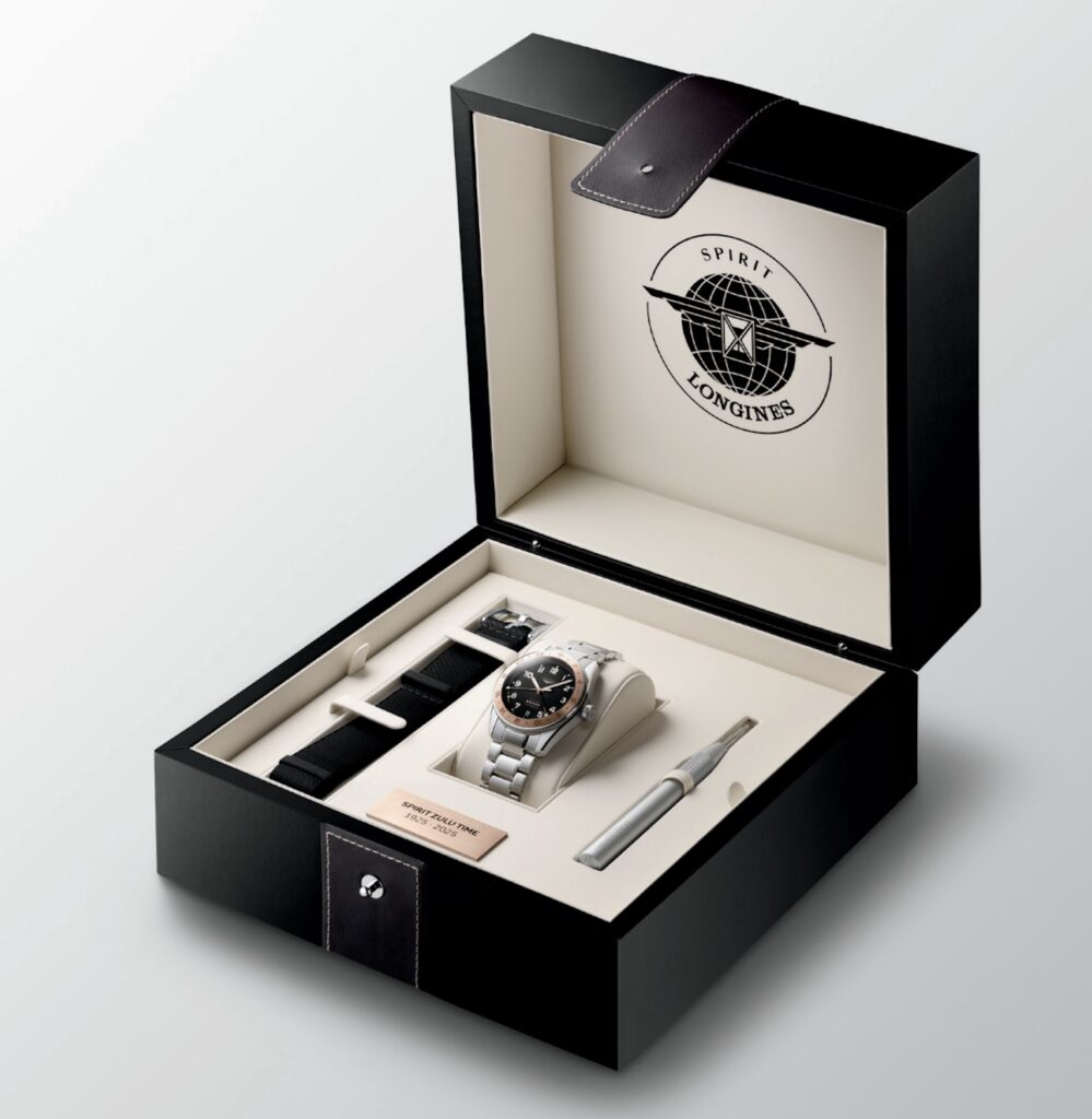 El novedoso reloj se ofrece con dos opciones intercambiables: un brazalete de acero inoxidable equipado con un cierre de seguridad de doble pliegue y una correa NATO negra sujeta con una hebilla de pasador. Esta dualidad se adapta tanto a sensibilidades formales como robustas, reflejando la versatilidad del reloj como compañero para la exploración global o para ocasiones refinadas. Presentado en una caja conmemorativa hecha a medida, el Longines Spirit Zulu Time 1925 se enmarca como un artefacto de importancia histórica, con un embalaje diseñado para evocar el hito que celebra.