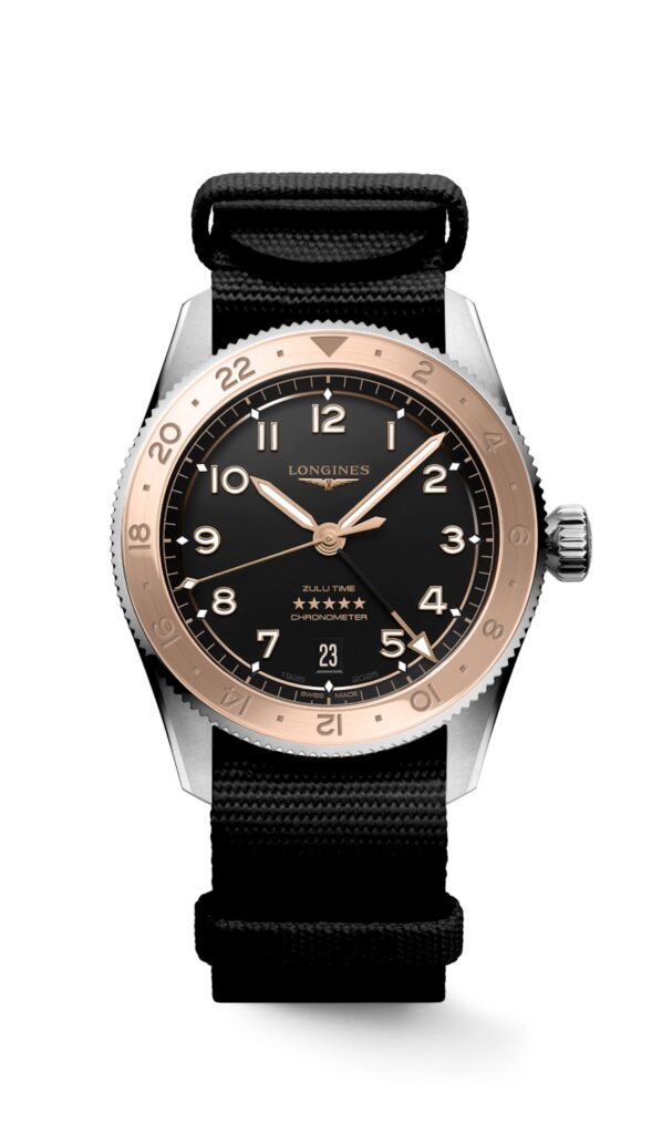 Longines, fundada en Saint-Imier, Suiza, en 1832, era un importante fabricante de instrumentos cronométricos de precisión a principios del siglo XX, con creaciones muy valoradas por los exploradores de aquella época. Su experiencia en mecanismos de doble huso horario comenzó con un reloj de bolsillo de 1908 para el Imperio Otomano, que convertía la hora turca a la occidental —una idea patentada en 1911— y que allanó el camino para el reloj Zulu Time de 1925. El término «Zulu», derivado de la «Z» del alfabeto fonético de la OTAN, significa Tiempo Universal Coordinado (UTC), centrado en Greenwich, Inglaterra. Para los operadores de radio de los grandes buques en alta mar, que atravesaban diferentes husos horarios, era importante conocer la hora de referencia en el meridiano cero de Greenwich cuando se comunicaban con el mundo. Al mismo tiempo, los pioneros de la aviación empezaron a conectar continentes mediante vuelos de larga distancia sobre el Atlántico y el Pacífico. Aviadores como Amy Johnson, que voló en solitario de Inglaterra a Australia en 1930, y Clyde Pangborn y Hugh Herndon, que completaron el primer vuelo transpacífico sin escalas en 1931, utilizaban instrumentos Longines para navegar y encontrar el camino.