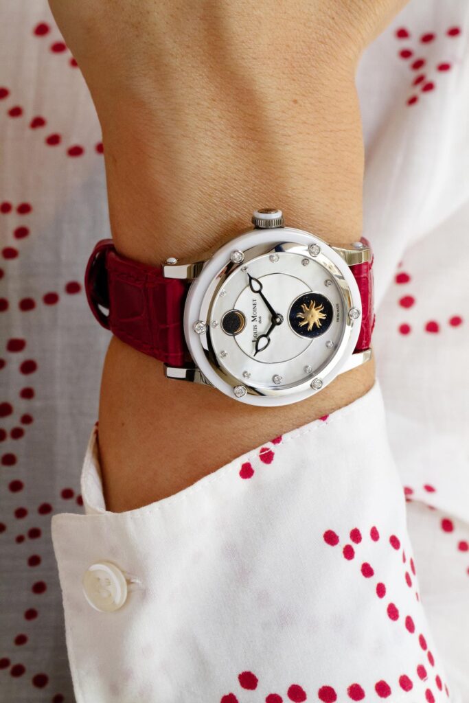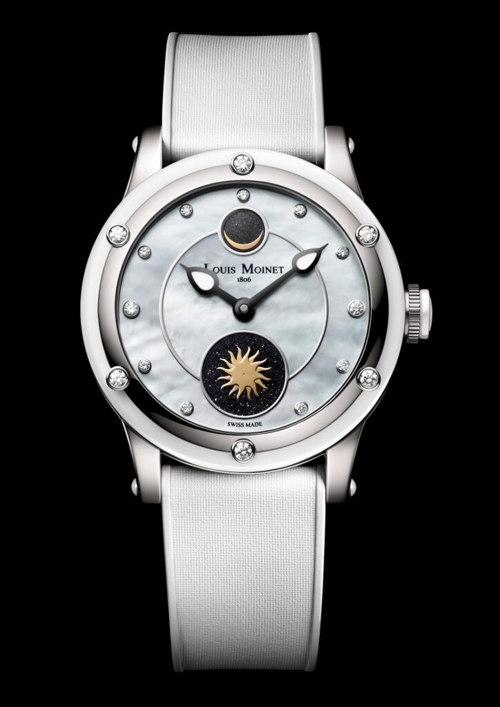 Este marcatiempos reúne dos de los grandes marcadores del tiempo para la humanidad —el Sol y la Luna— en una composición que privilegia tanto la estética como la ejecución técnica. Así, más que una fase lunar, es una suerte de «cita celestial».