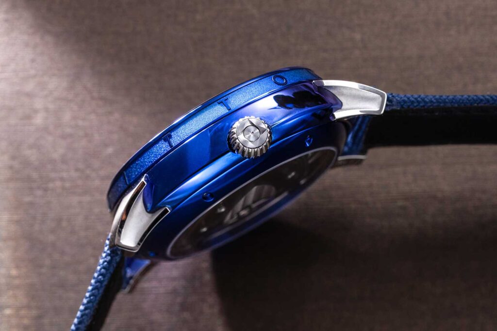 También tiene un espiral propio con su propia curva terminal, que dice es superior a la de la sobre-espiral Phillips. Y además de eso, es bien conocido por innovaciones como el amortiguador de choques triple pare-chute, los indicadores de fases lunares tridimensionales, las asas flotantes, así como por su uso de titanio Grado 5, que se pule a alto brillo y luego se azula a la llama para crear un espectáculo visual absolutamente deslumbrante. También es el inventor del tourbillon más ligero del mundo, que late a 5 Hz y da una revolución dos veces por minuto.