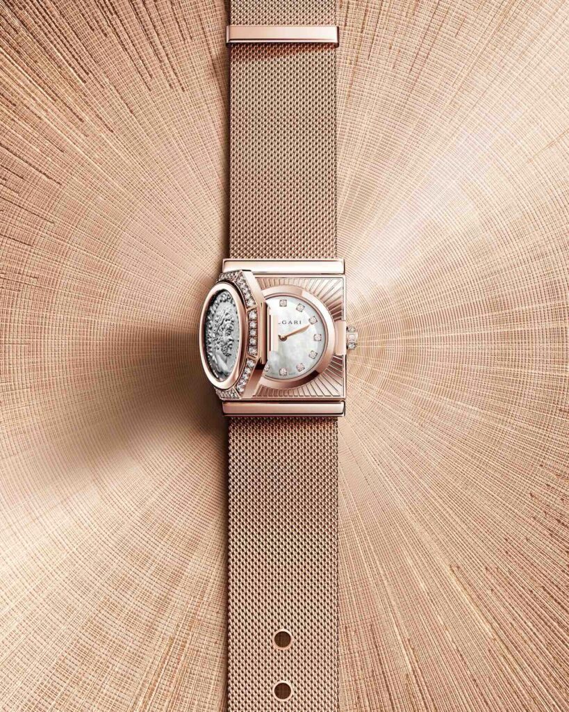 Por primera vez, la Maison explora el arte ancestral de la malla milanesa, una técnica renacentista nacida en Milán que aquí se expresa en oro rosa con una flexibilidad sorprendente. La pulsera fluye como un tejido precioso, envolviendo la muñeca con suavidad contemporánea. En su interior late el calibre Piccolissimo BVP100, el movimiento redondo más pequeño del mundo, ahora reimaginado con cuerda mediante corona y fondo de zafiro. Es un prodigio de miniaturización que refuerza la idea de que la verdadera sofisticación no necesita imponerse: se descubre.