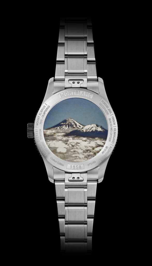 Montblanc presenta una versión del 1858 Geosphere dedicada exclusivamente al mercado mexicano, limitada a 50 piezas. El punto de partida es la leyenda nahua del Popocatépetl y el Iztaccíhuatl: una princesa y un guerrero que, según la tradición, fueron convertidos por los dioses en volcanes tras su separación. Ella, recostada como la Mujer Dormida; él, de pie con su antorcha encendida. Una historia que los mexicanos conocen de memoria y que Montblanc traslada al reverso del reloj mediante un grabado en láser 3D con el relieve topográfico de ambas cumbres.