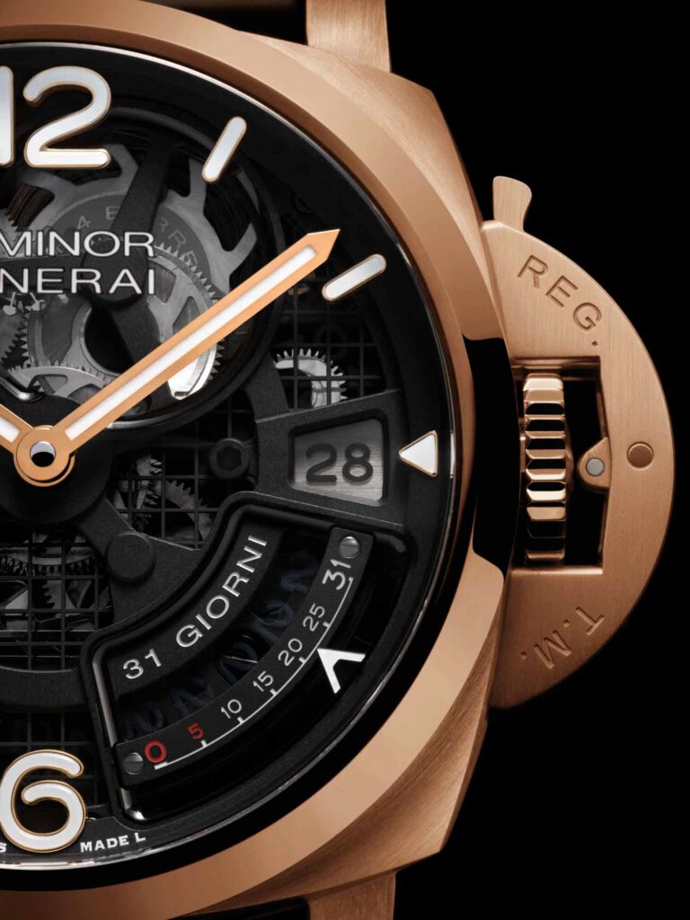 El Luminor 31 Giorni PAM01631 representa un hito en el legado de la casa en materia de reservas de marcha calendáricas (¡y en esta oportunidad somos literales!). Con una autonomía sin precedentes de 31 días, este reloj eleva la tradición iniciada en los años 50 con el calibre Angelus SF240 y continuada con los movimientos de 8 y 10 días.