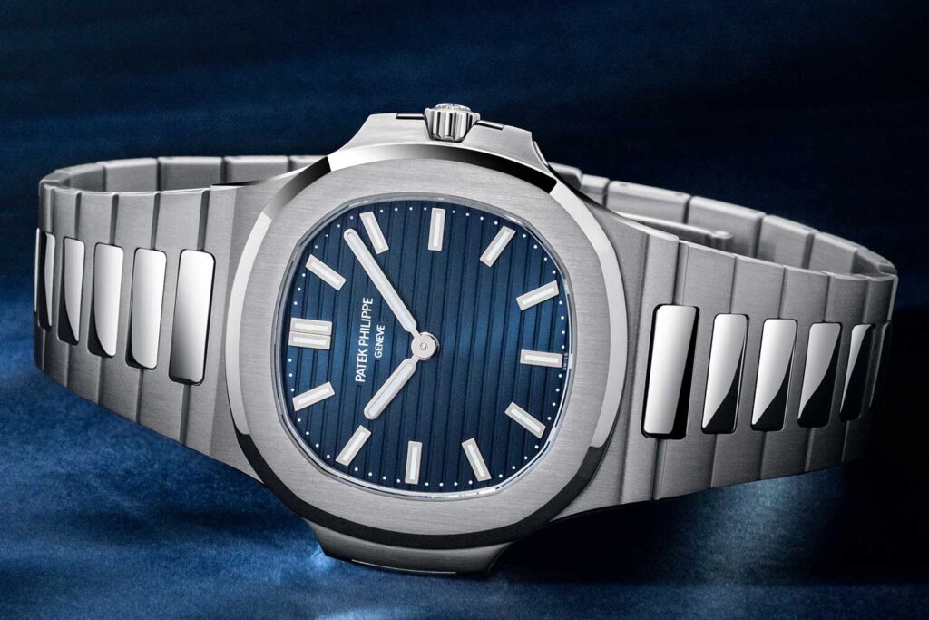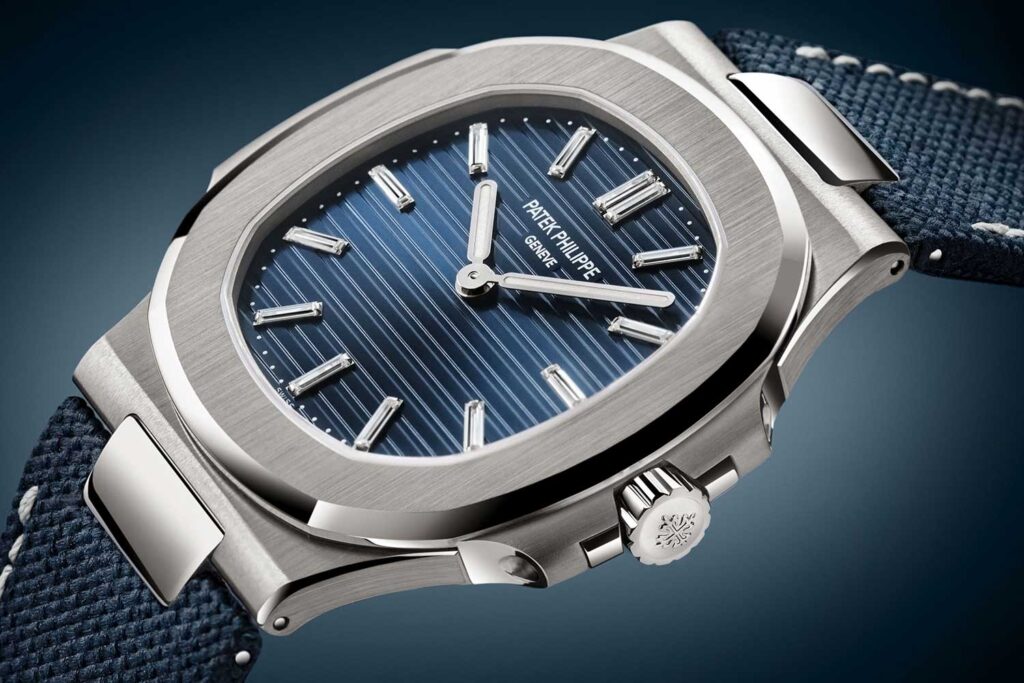 La caja está ejecutada en platino, con brazalete íntegramente en platino y mide apenas 6.9 mm de grosor, con el habitual diamante engastado en la “oreja” izquierda, un detalle que durante mucho tiempo ha servido como indicador discreto del material. Al igual que las piezas conmemorativas de mayor tamaño, la indicación se reduce a lo esencial —horas y minutos únicamente—, dejando una esfera notablemente despejada y, dentro de la colección actual del Nautilus, bastante inusual. Igualmente, está propulsada por el calibre 240, que incorpora la inscripción del aniversario, y está limitada a 2,000 piezas.