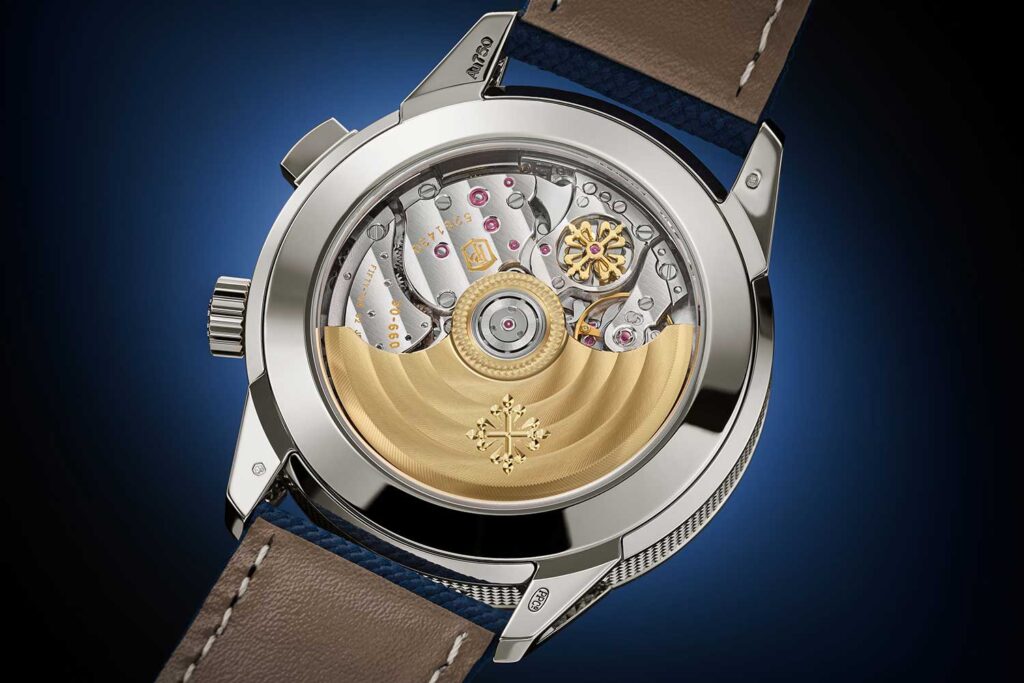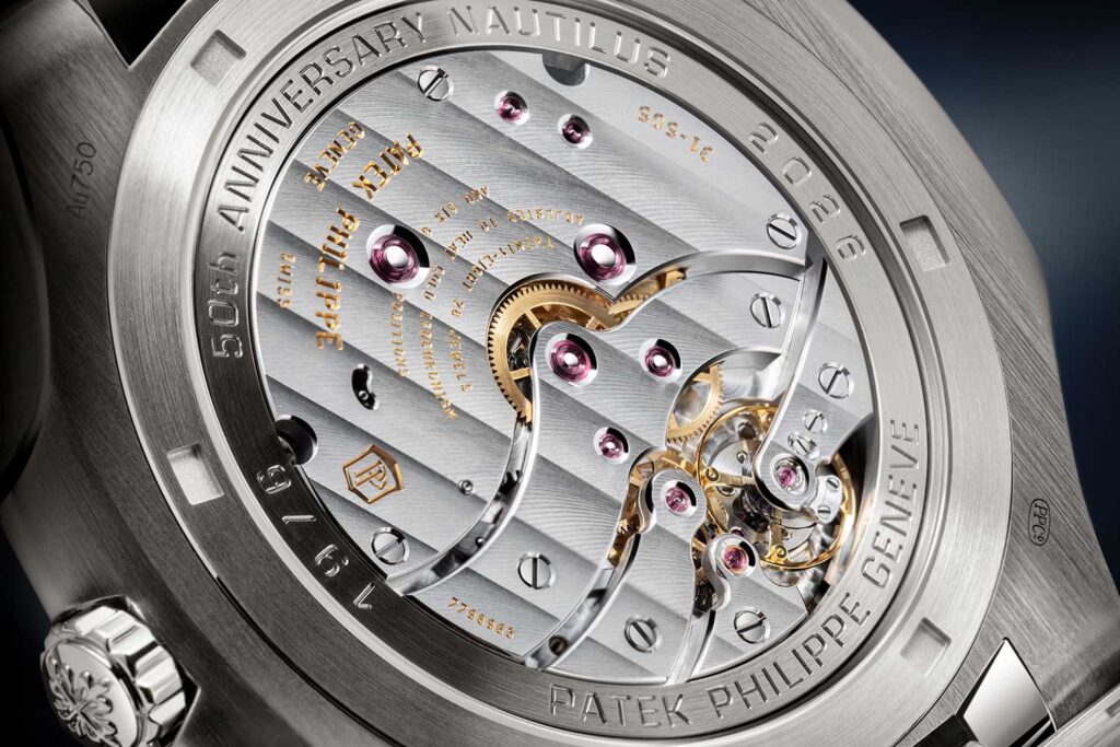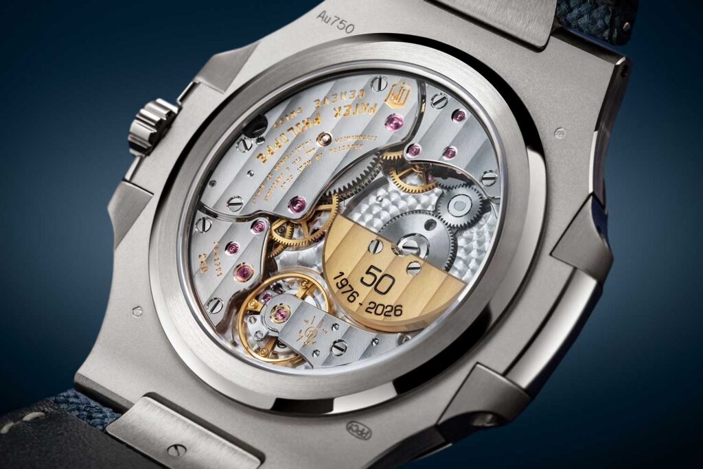 Ambas están propulsadas por el calibre automático ultraplano 240, un movimiento asociado desde hace tiempo al Nautilus, en concreto a las Ref. 5712 y Ref. 5740. Con solo 2.53 mm de altura, sigue siendo uno de los movimientos automáticos más elegantes de Patek Philippe, y el microrrotor de oro de 22 quilates lleva grabado “50 1976 – 2026” como un recordatorio discreto pero inconfundible de la ocasión.