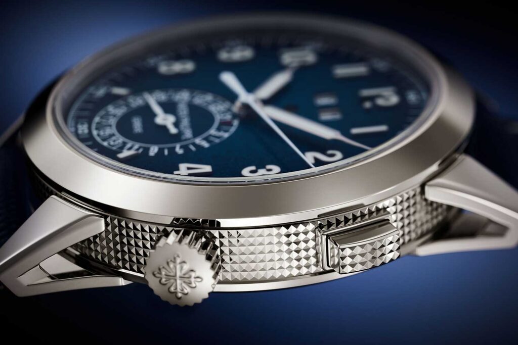 La complicación de alarma de Patek, vista por primera vez en el Alarm Travel Time 5520P en 2019, es una especie de aristócrata entre las alarmas, pues está construida de forma tan elaborada como un reloj de repetición. Suena mediante un martillo que golpea un gong, y su cadencia está controlada por un regulador silencioso, igual que en un repetidor de minutos. Para este año, Patek simplifica el concepto, ofreciendo una ejecución más depurada con alarma de 24 horas e indicación de fecha, y prescindiendo por completo de la función Travel Time.