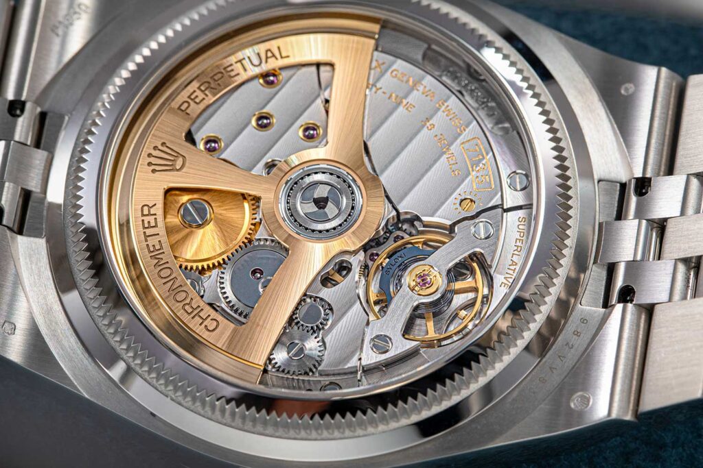 Esto se logra mediante su nuevo escape Dynapulse, rediseñado desde sus cimientos. El escape Dynapulse reduce la fricción, optimizando la energía y la eficiencia en aproximadamente un 30 por ciento en comparación con el escape de áncora suizo, todo sin ocupar mucho más espacio. Rolex también ha reelaborado el oscilador, aprovechando la ciencia de materiales avanzada para optimizar la resistencia a los golpes y la estabilidad, y mejorar la resistencia magnética. Para lograr una mayor frecuencia, Rolex ha incorporado un espiral Syloxi con bobinas más gruesas y remodeladas para mayor rigidez, lo que le permite mantener una oscilación estable a 5 Hz.