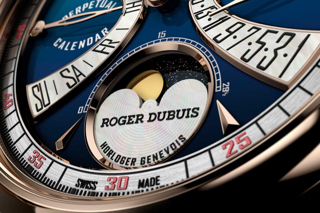 El resultado es un reloj de calendario perpetuo de 38 mm en oro rosa que es a la vez un artefacto de los primeros años independientes de Roger Dubuis y una muestra del savoir-faire moderno de la manufactura de Ginebra.